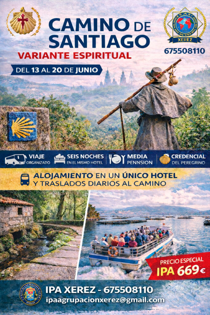 La Comunidad Territorial de IPA Andalucía, en nombre de su Agrupación de IPA Xerez, nos invita a participar en el Camino de Santiago, variante espiritual, que ha organizado dicha Agrupación para los días 13 al 20 de junio de 2026.