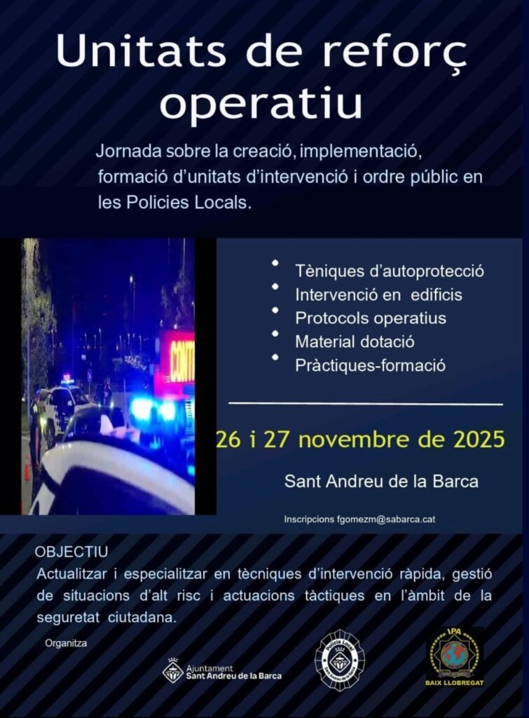 La Policia Local de Sant Andreu de la Barca amb la col·laboració d’IPA Baix Llobregat organitza una “Jornada sobre Unitats de Reforç Operatiu”.