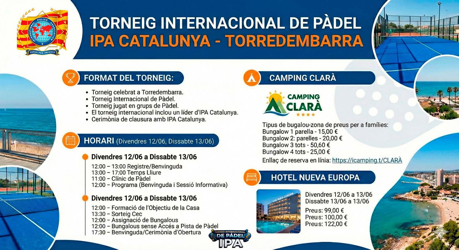 IPA Catalunya organitza un Torneig internacional de Pàdel, els próxims dies 12 i 13 de juny de 2026 a Torredembarra (Tarragona).